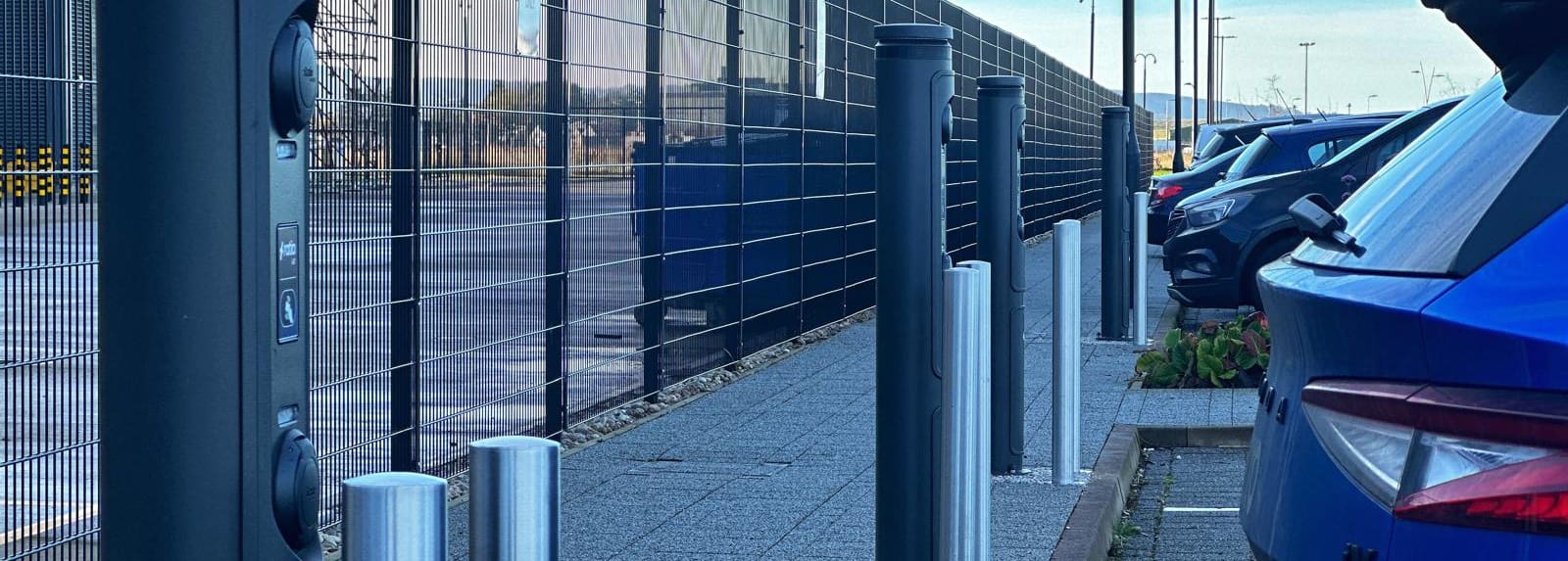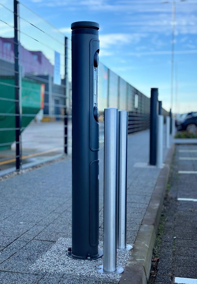 installed on posts at the front of the site, with seven io7 chargers and one rapid charger positioned to the rear. To manage power effectively, cloud-based load management was implemented using Fuuse, ensuring optimal performance without the need for major electrical upgrades.